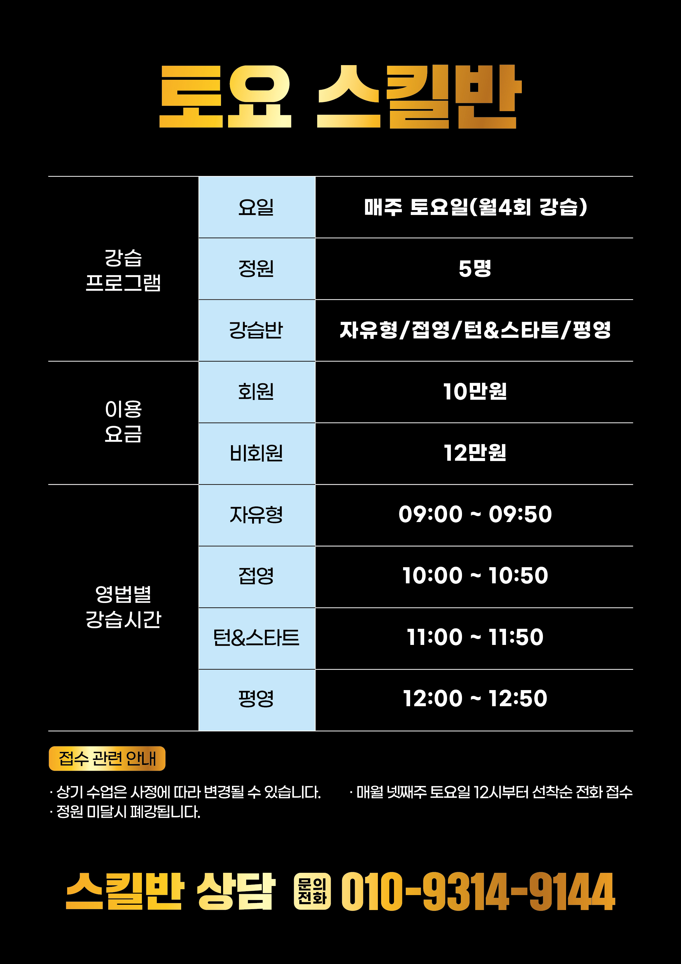 동아스포츠수영장 토요스킬반이 개설되었습니다.