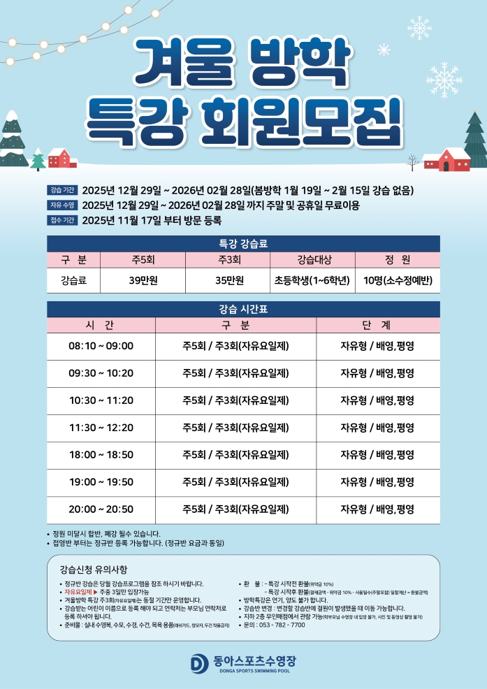 자유형, 접영, 턴&스타트, 평영 4개 반 개설